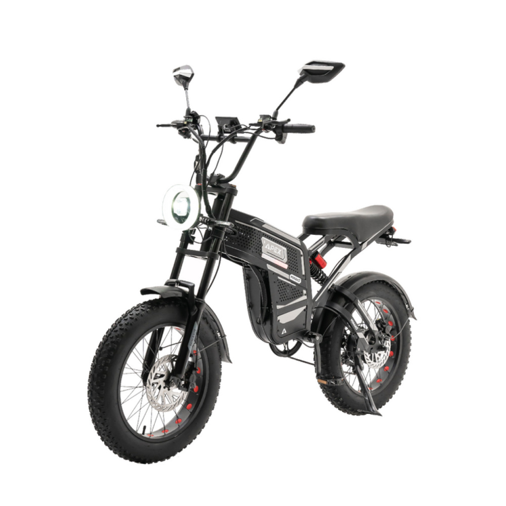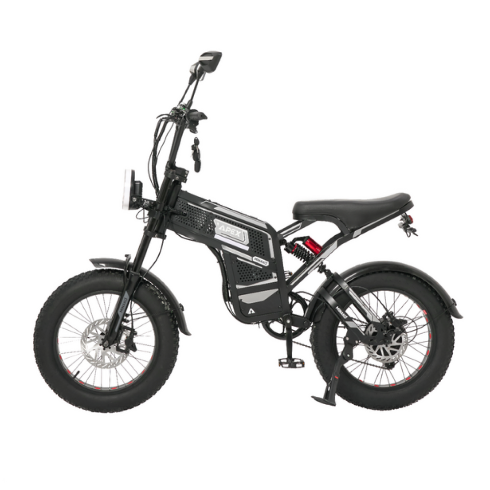 Minako Apex — это современный электрофэтбайк на стальной раме, сочетающий в себе мощность, комфорт и универсальность для езды по городу и бездорожью. Благодаря широким колёсам 20x4 дюйма, высокой грузоподъёмности и ёмкому аккумулятору эта модель идеально подходит для взрослых пользователей, которым нужен надёжный транспорт для любых условий.