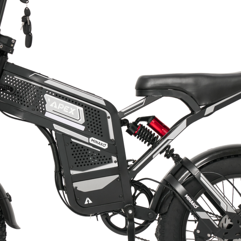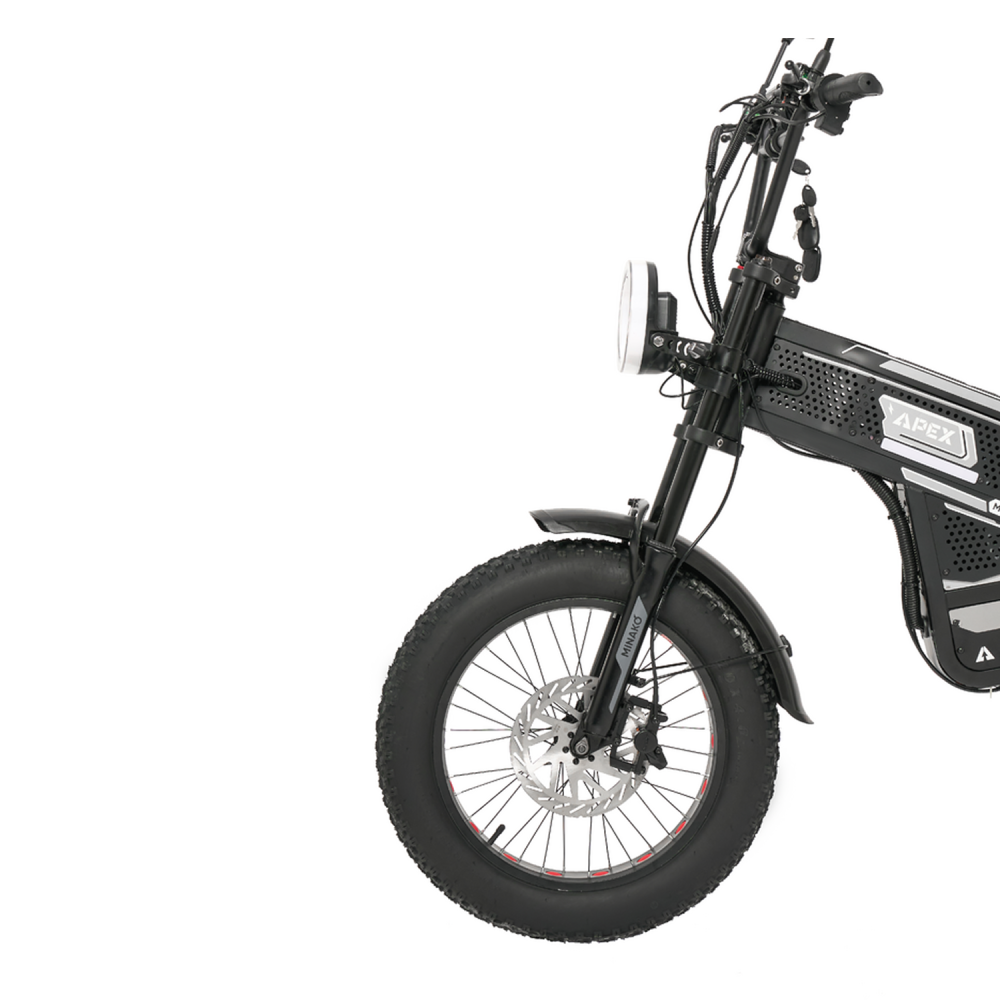 Minako Apex — это универсальный электрофэтбайк, сочетающий в себе стиль, практичность и мощность. Он станет отличным выбором для тех, кто хочет уверенно чувствовать себя на дороге и за её пределами, не зависеть от качества покрытия и получать удовольствие от каждой поездки