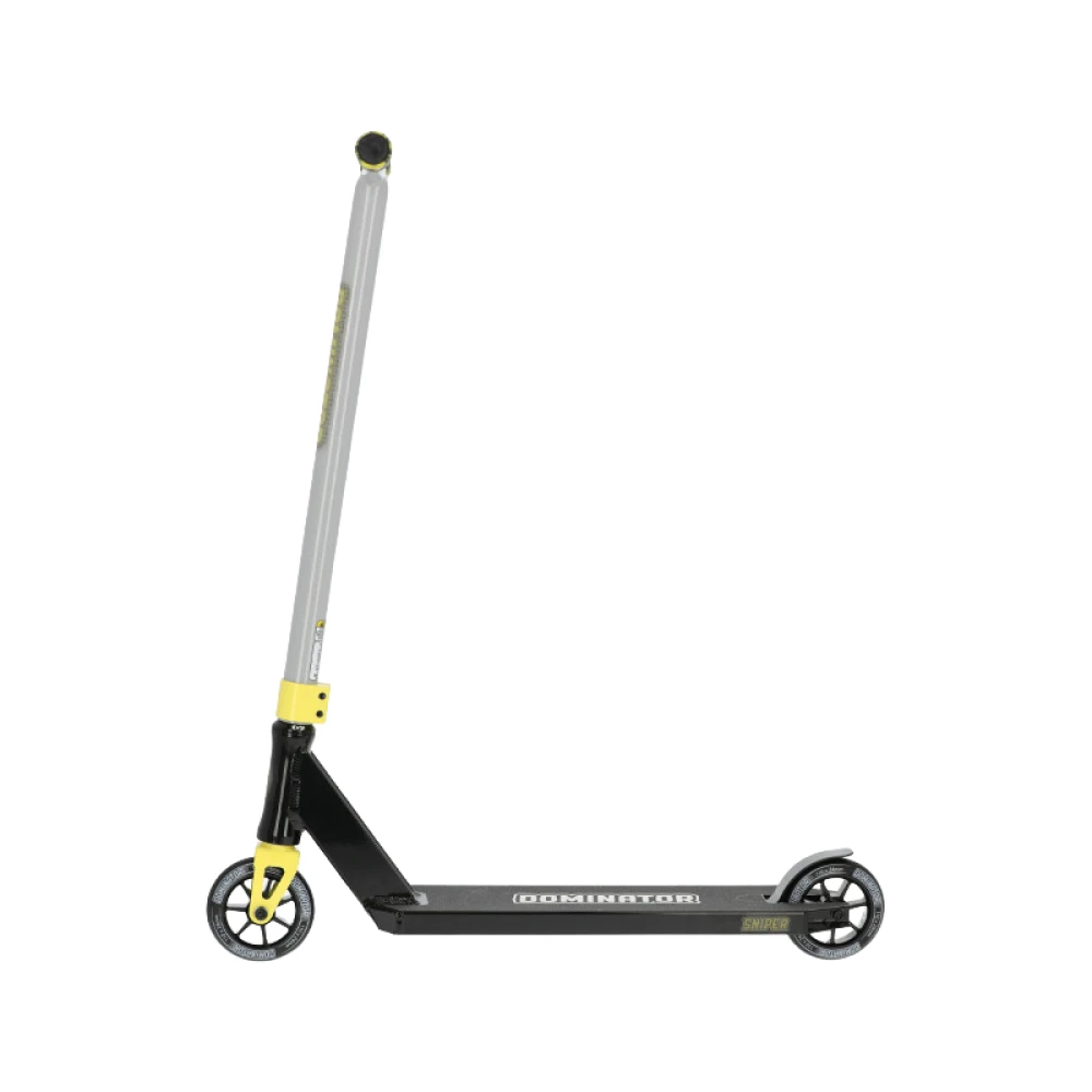 Трюковой самокат Dominator Sniper, 110 мм черно-серый – прочная продвинутая модель изготовлена в современном дизайне. Стала хитом продажи этого сезона. При весе 3,7 кг максимальная грузоподъемность составляет 100 кг. Облегченный вес техники обусловлен инновационным материалом изготовления. Алюминий устойчивый к эксплуатации в жестких условиях. Не деформируется и не теряет первоначальных характеристик на всем сроке эксплуатации самоката.